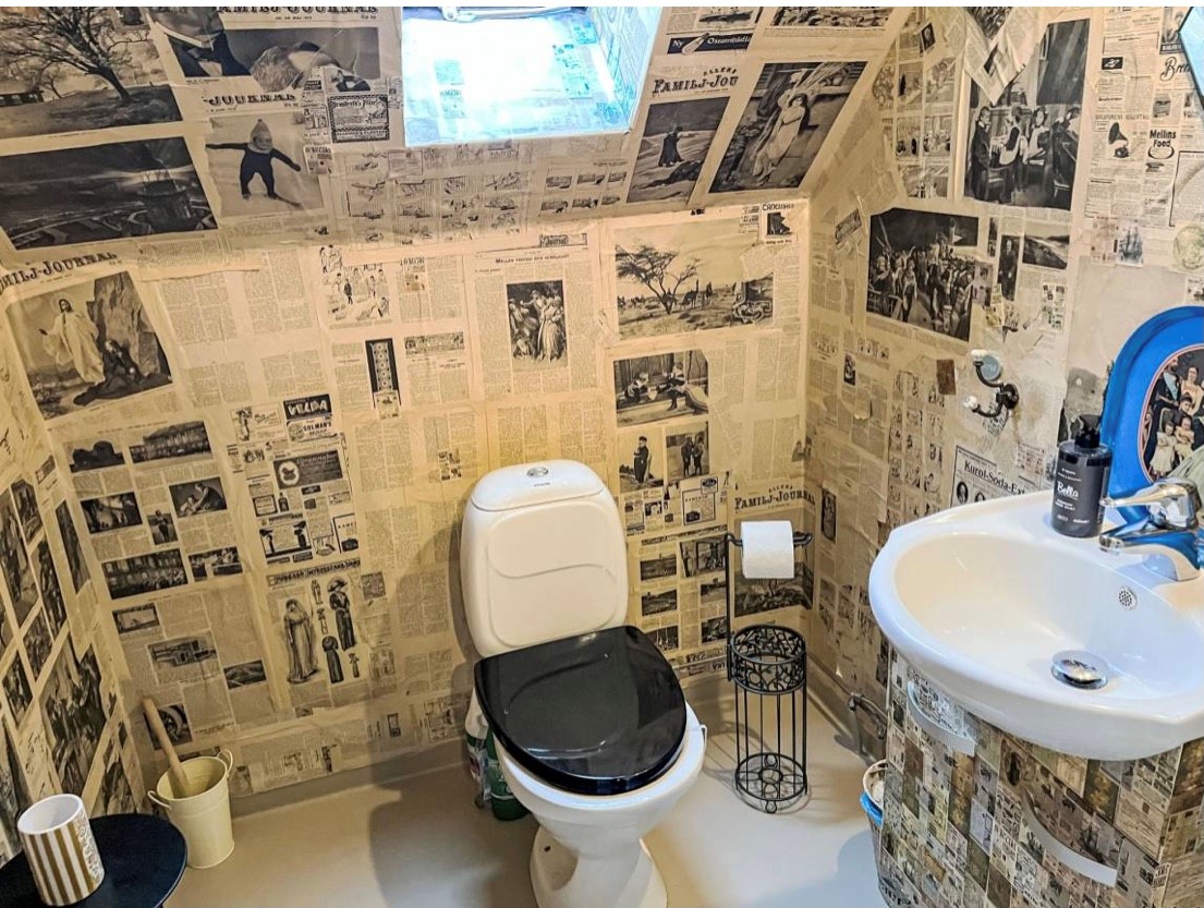 - Badezimmer: Kunststoffmatte, Toilette (2022), Waschbecken, Vorbereitung für Badewanne/Dusche