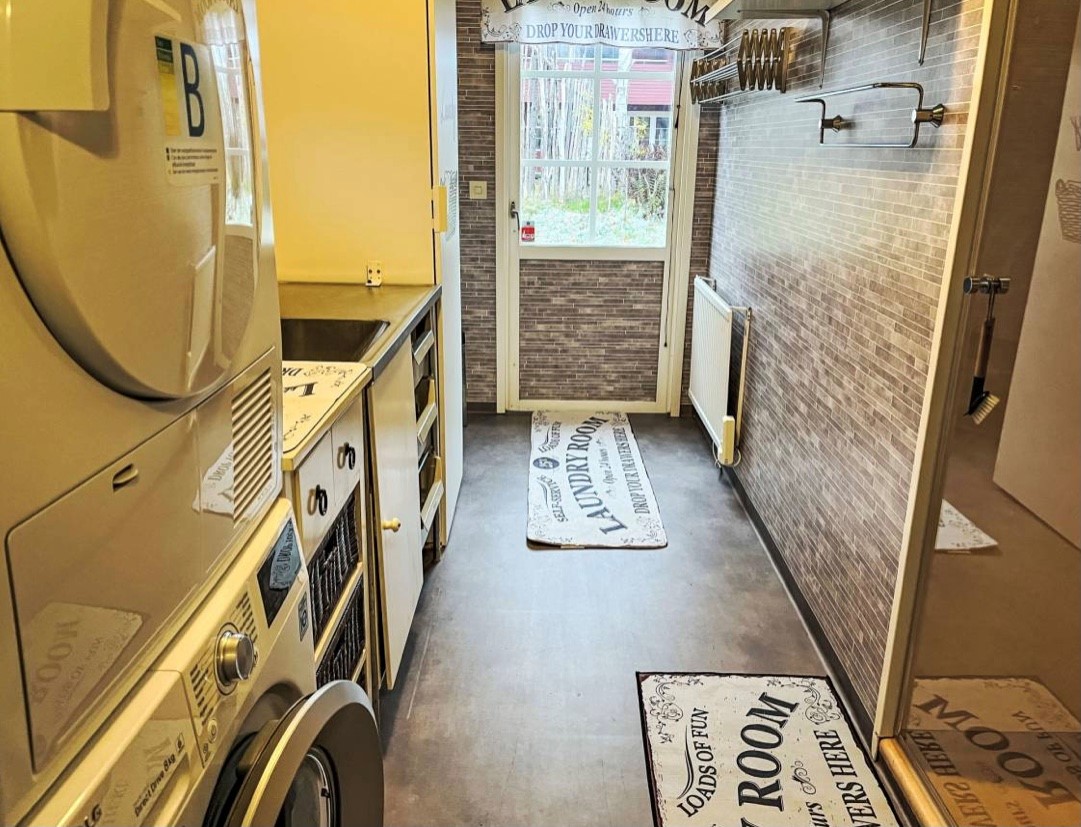 Kunststoffmatte, Waschmaschine, Trockner, Waschbecken, Warmwasserbereiter, Dusche, Zugang zum Garten - Küche (2014 renoviert, Boden 2019):